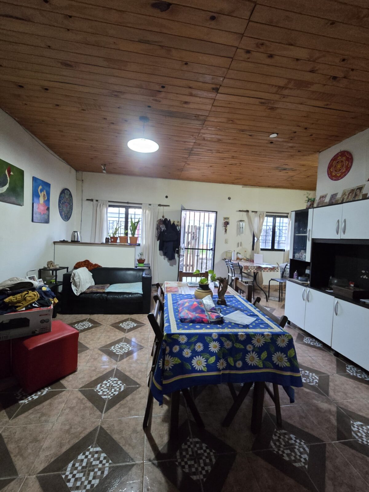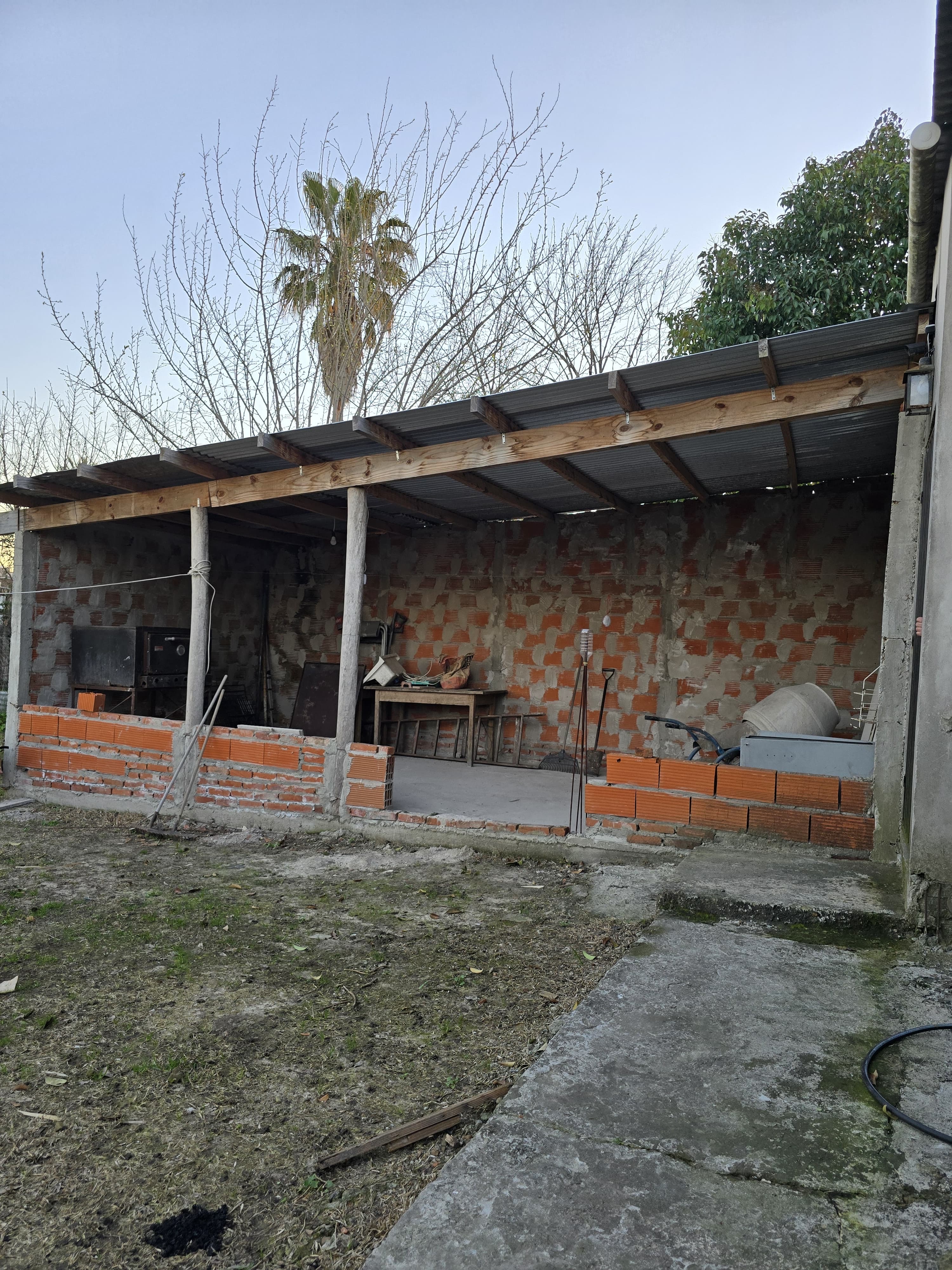 La propiedad se desarrolla en planta baja, compuesta por living/cocina/comedor integrado, tres dormitorios, dos baños, patio amplio con quincho y parrilla. Además, cuenta con entrada para auto semicubierta y porche.