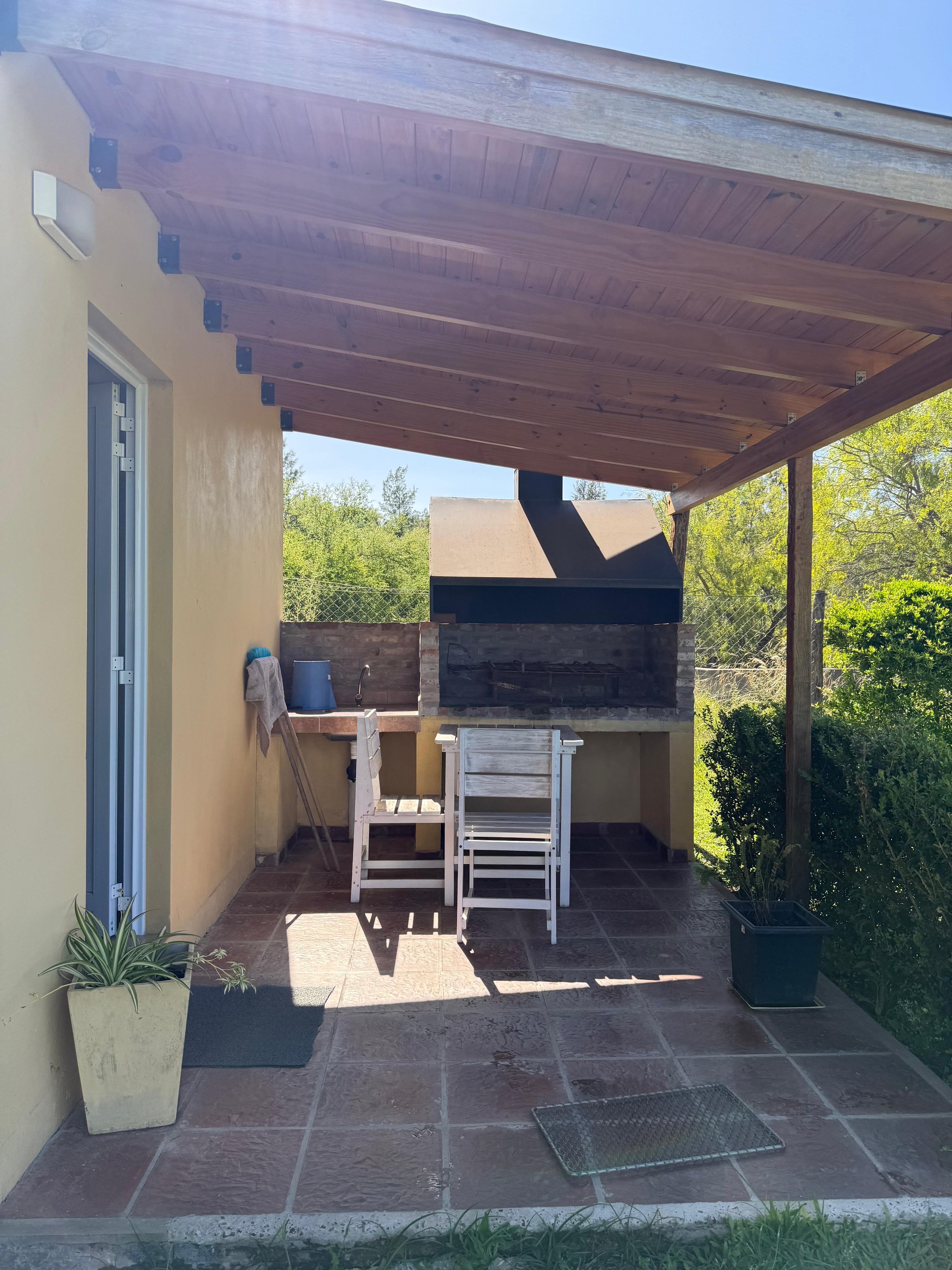 La casa principal cuenta con living, cocina/comedor integrado, dos dormitorios, baño completo, galería con parrilla y baño de servicio.