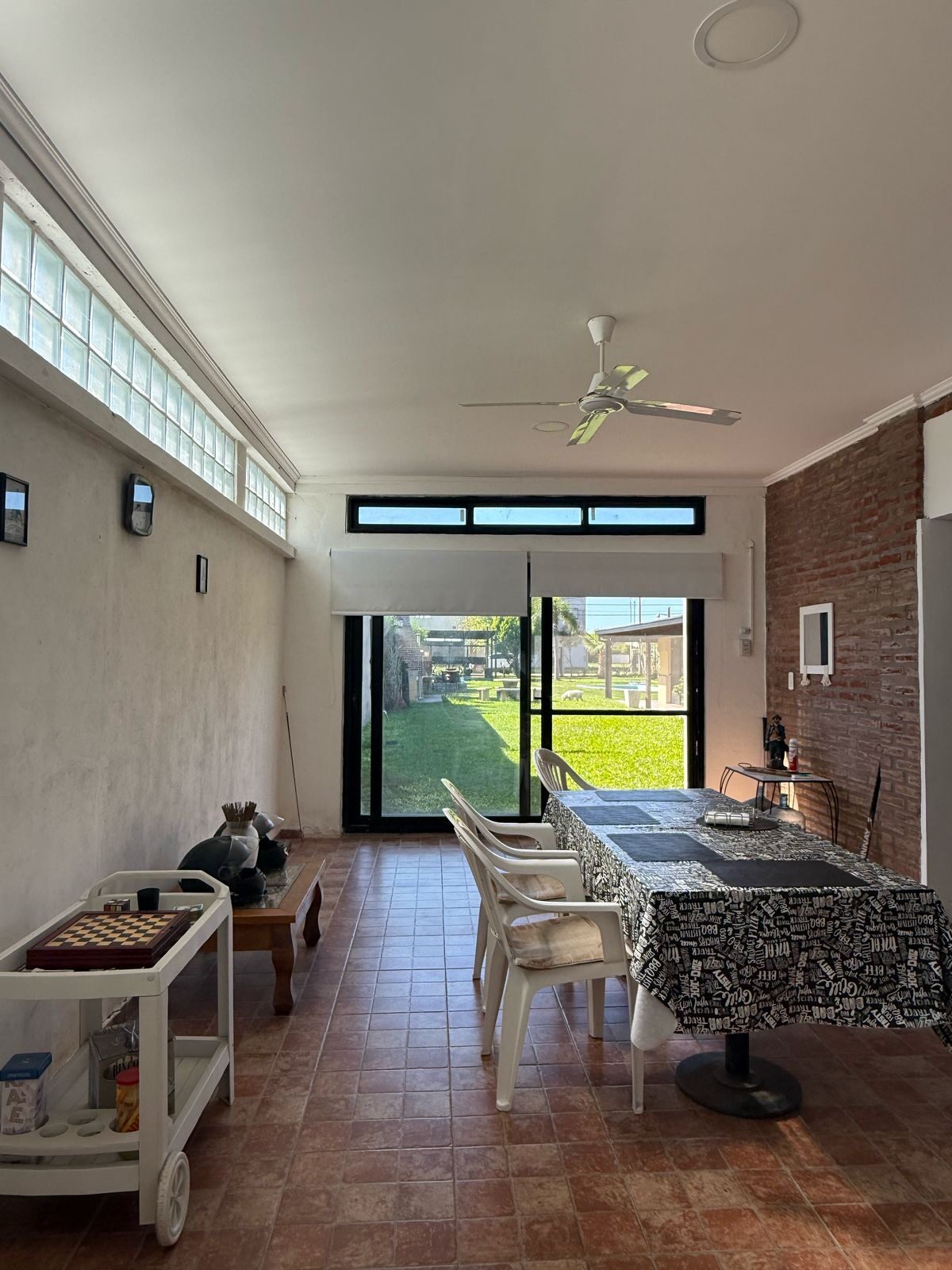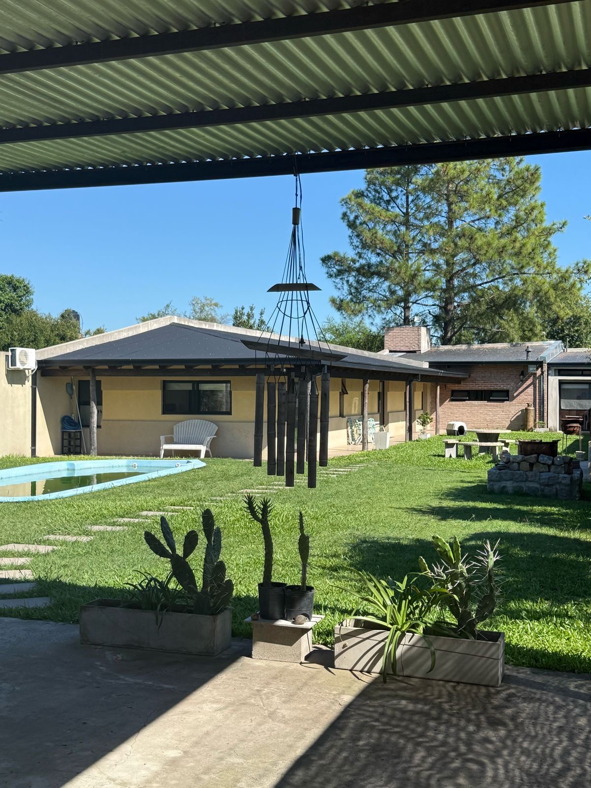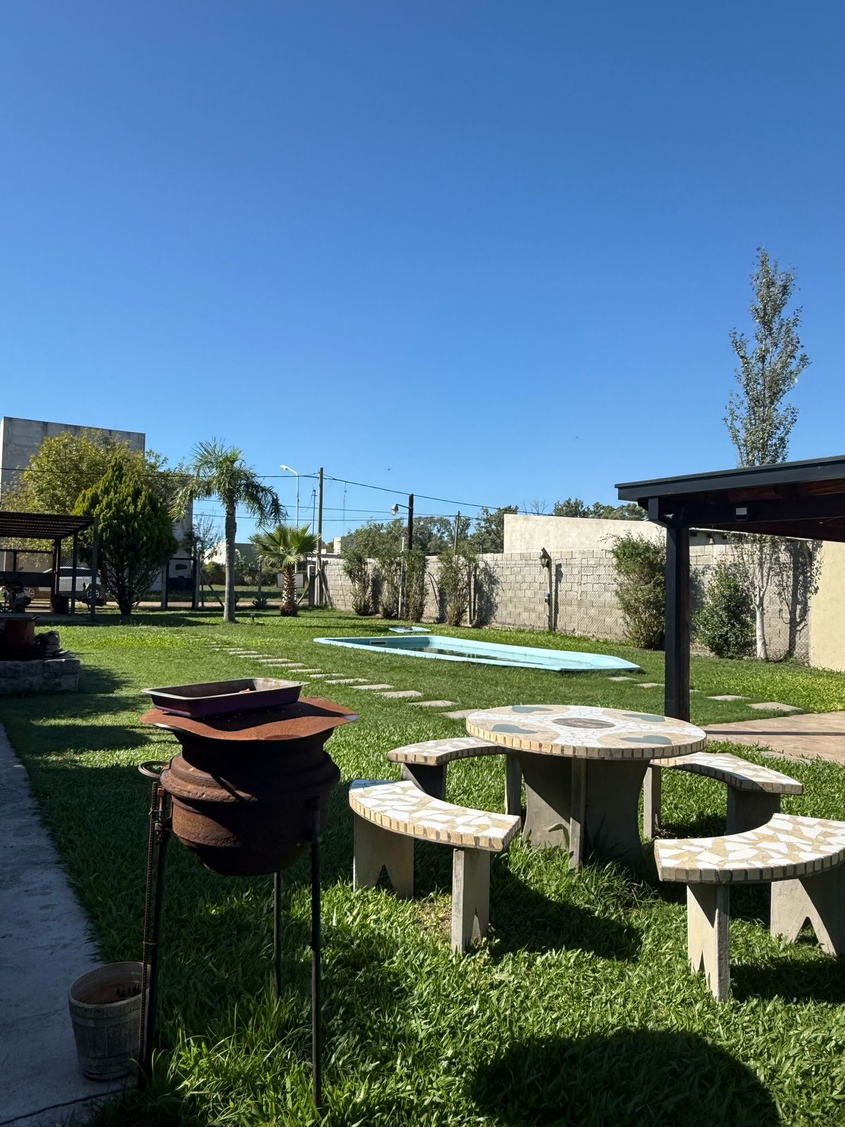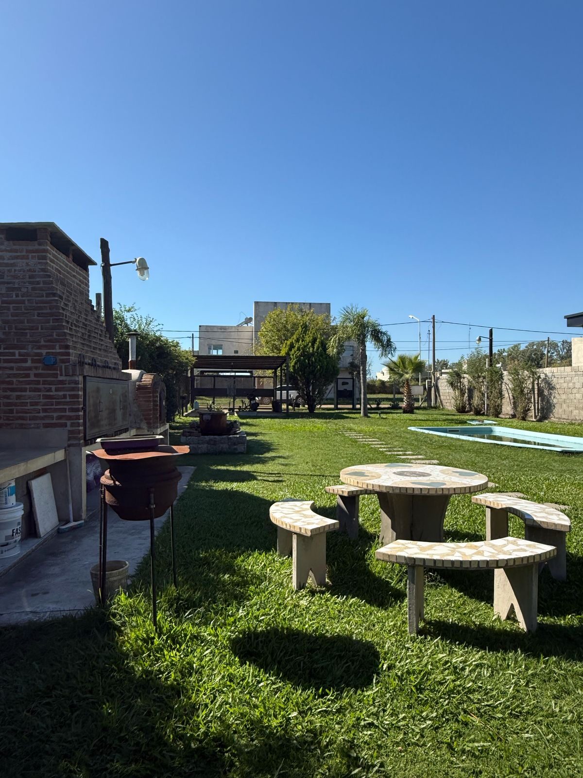 Compuesta totalmente en planta baja, con un Living luminoso con jardín interno, que aporta mayor iluminación natural, cocina amplia y equipada, con isla central, toilette. Dos dormitorios: uno de ellos con baño en suite y vestidor, más otro baño completo con antebaño. En el exterior un gran jardín parquizado con piscina. Parrilla, horno de barro y asador. Quincho cubierto con parrilla y lavadero.