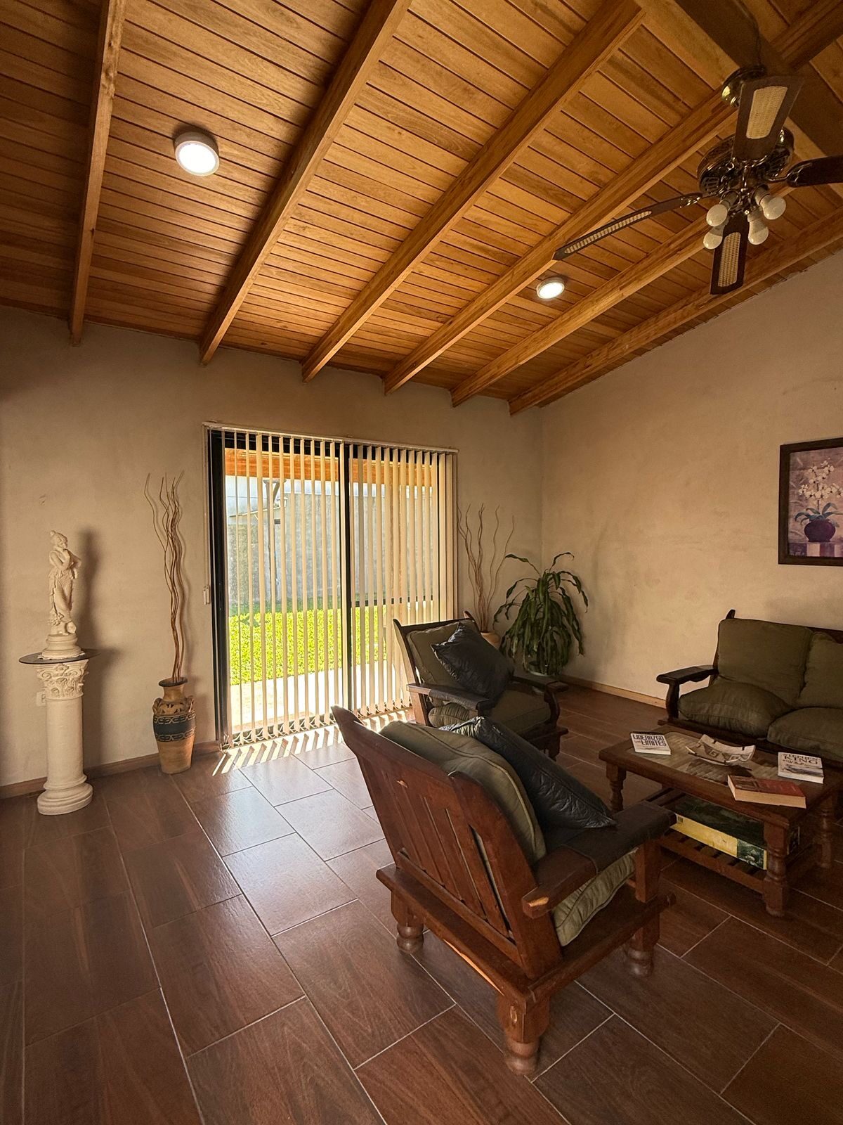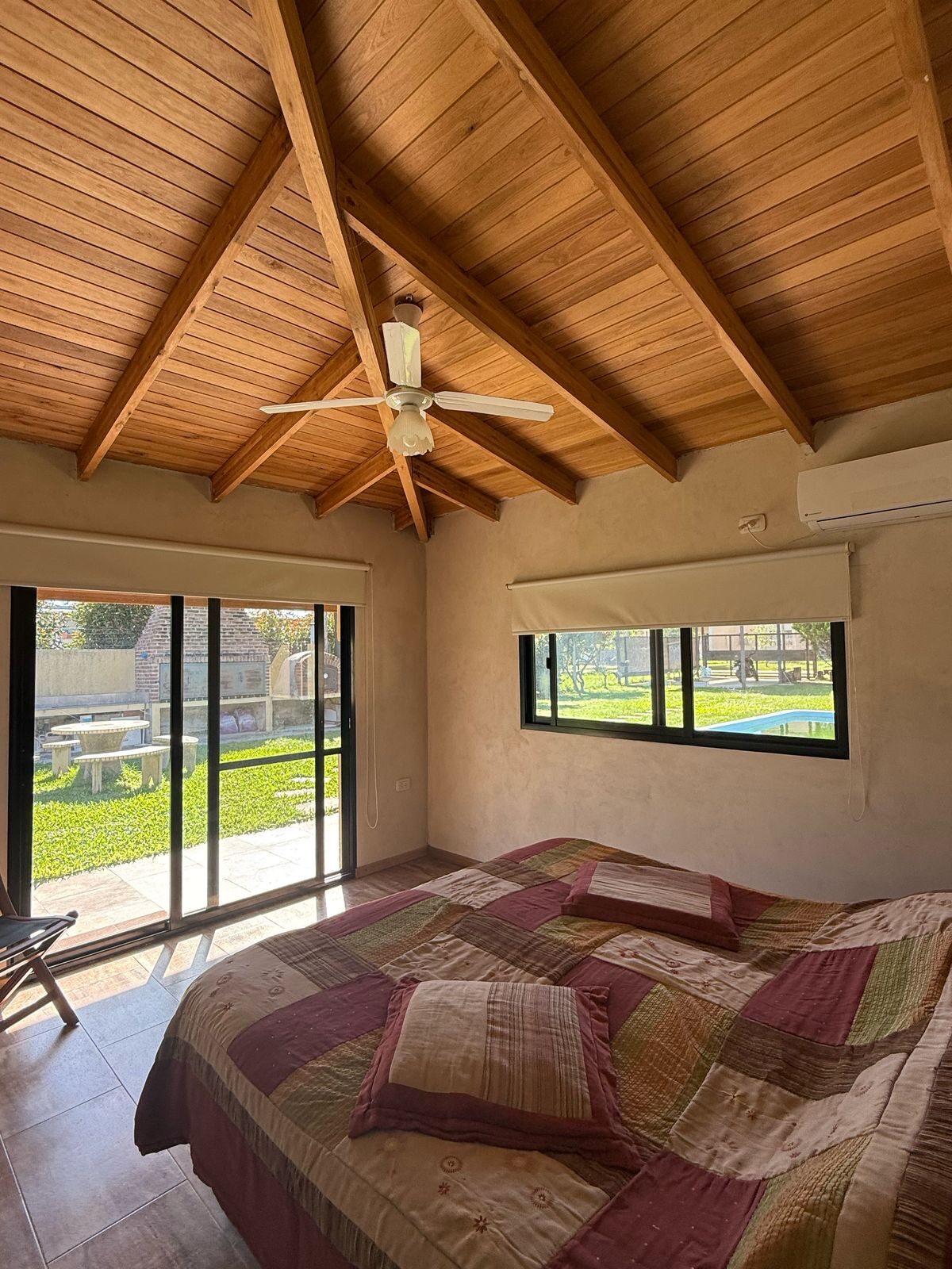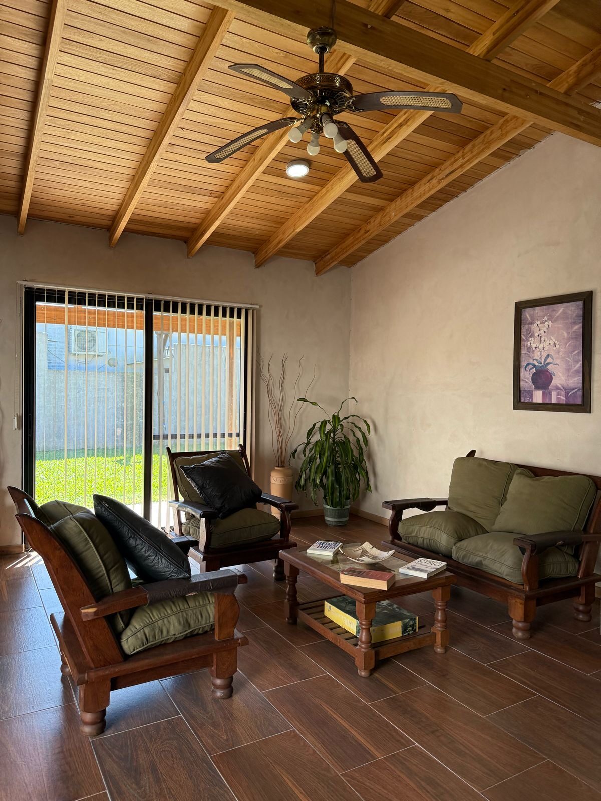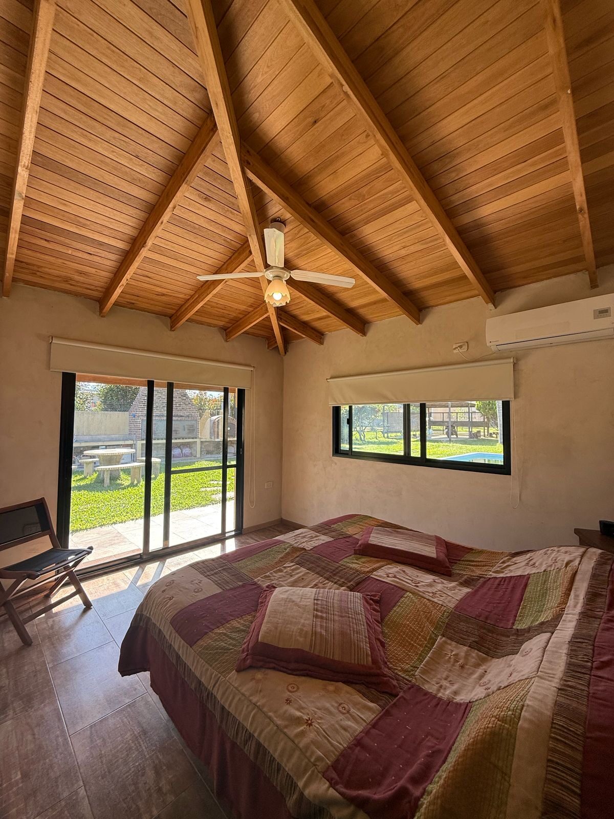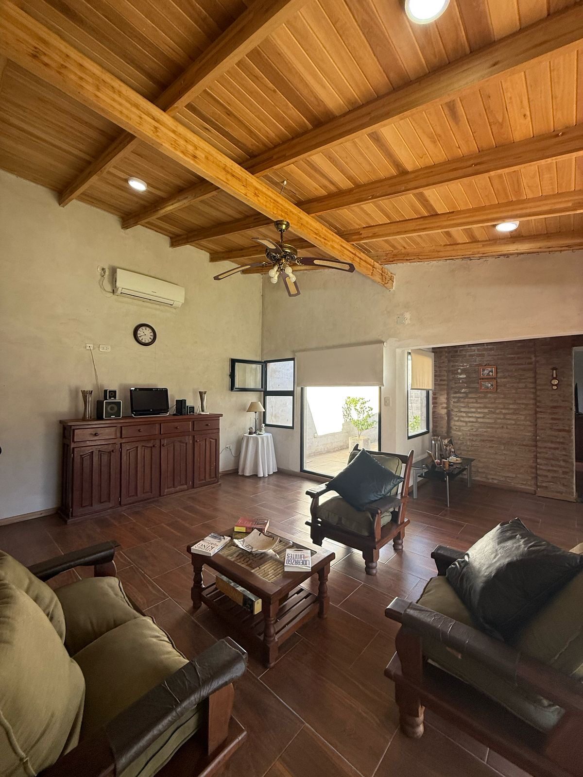 Compuesta totalmente en planta baja, con un Living luminoso con jardín interno, que aporta mayor iluminación natural, cocina amplia y equipada, con isla central, toilette. Dos dormitorios: uno de ellos con baño en suite y vestidor, más otro baño completo con antebaño. En el exterior un gran jardín parquizado con piscina. Parrilla, horno de barro y asador. Quincho cubierto con parrilla y lavadero.