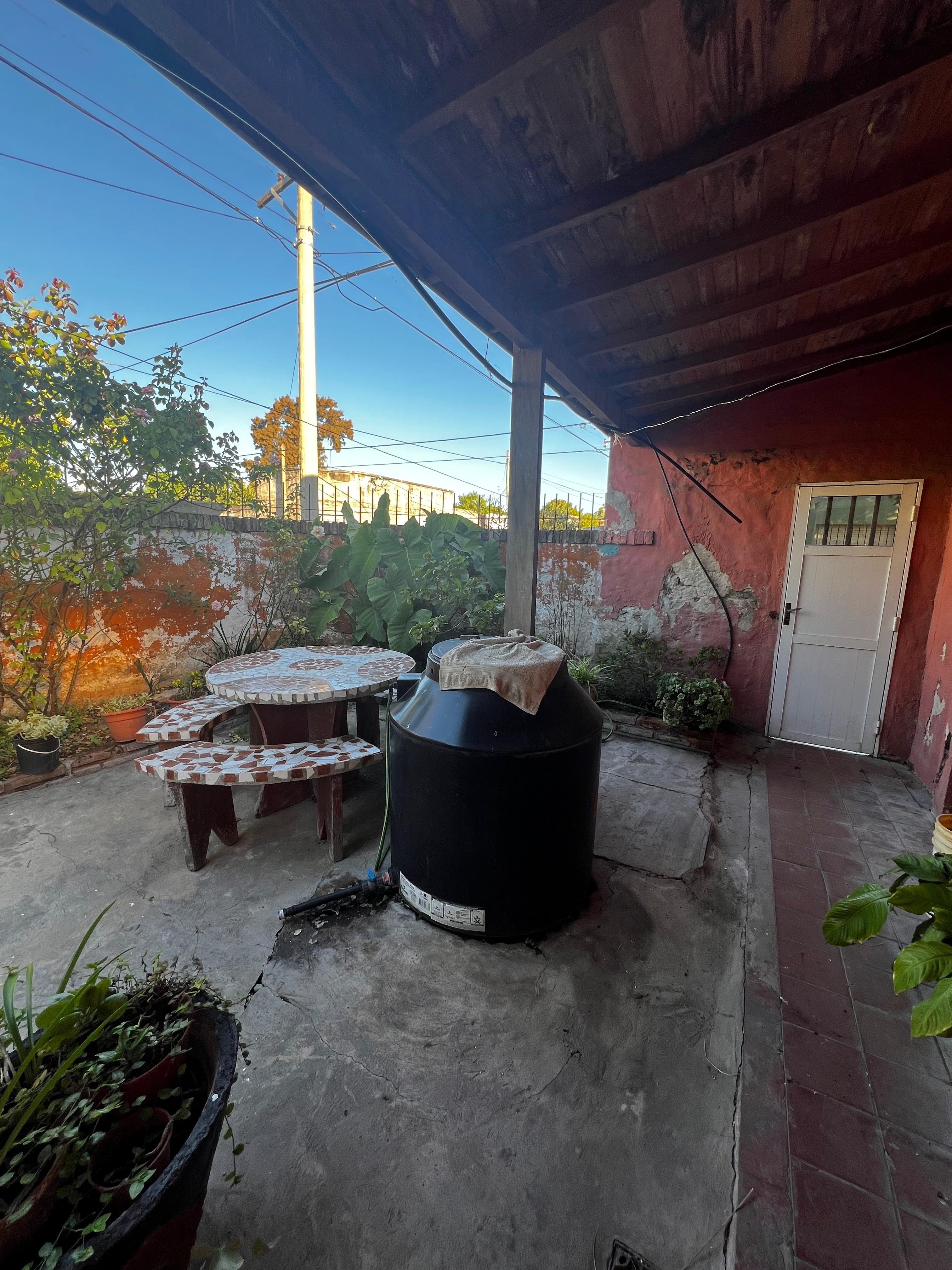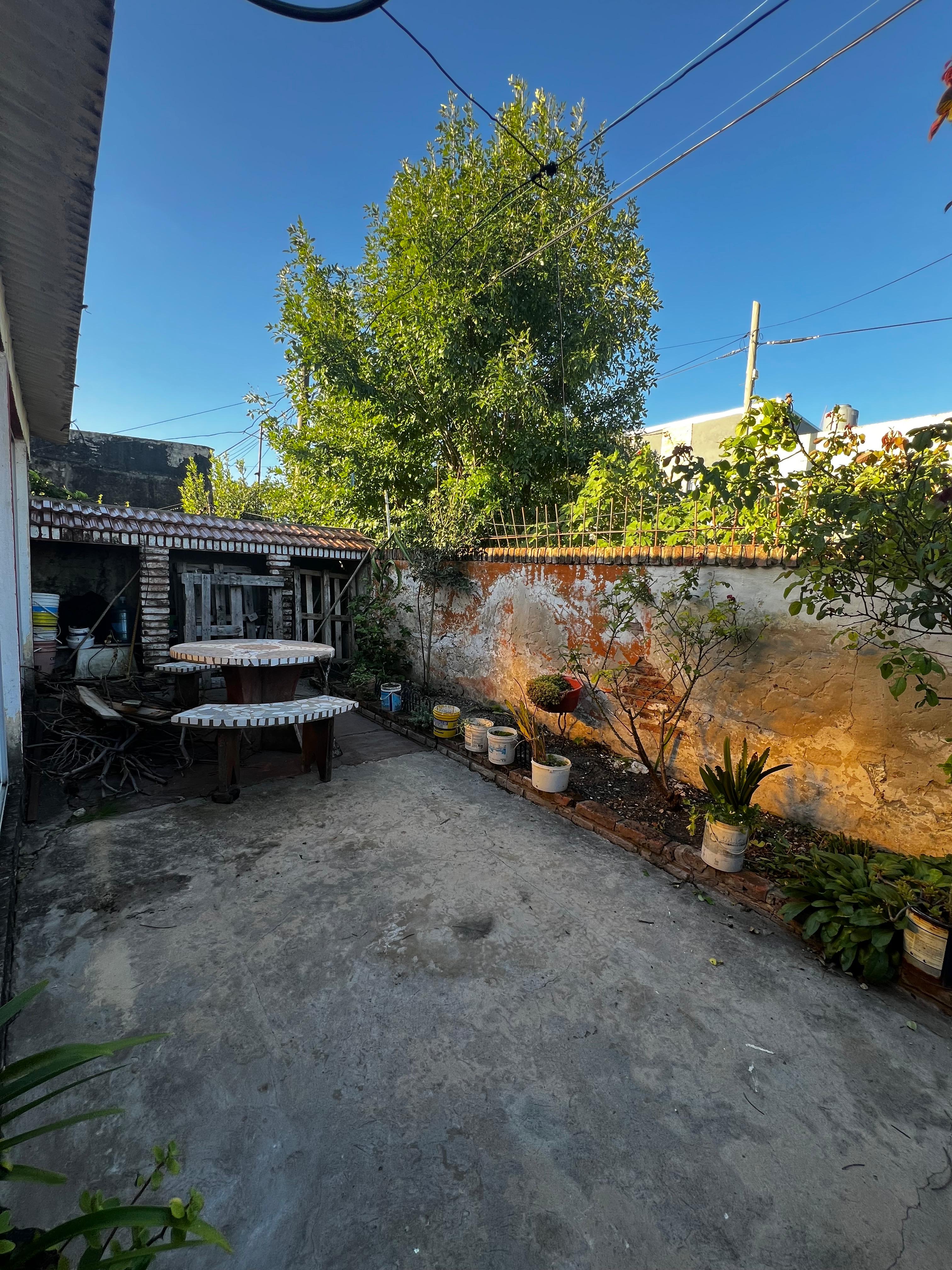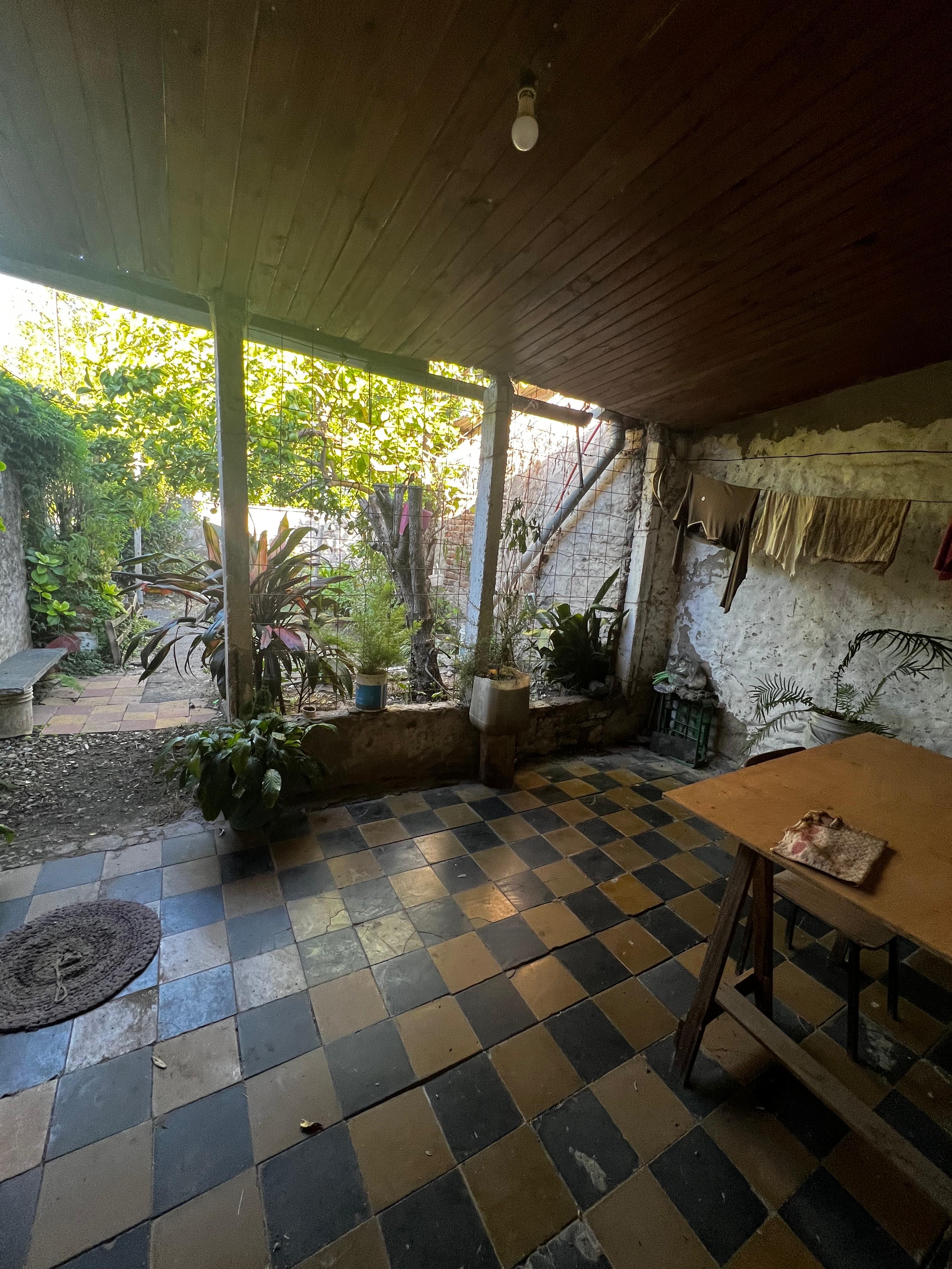 En la parte posterior y con frente a calle Perón encontramos una entrada para auto y un pequeño departamento en estado total de refaccion compuesto por living comedor, un dormitorio y un baño-