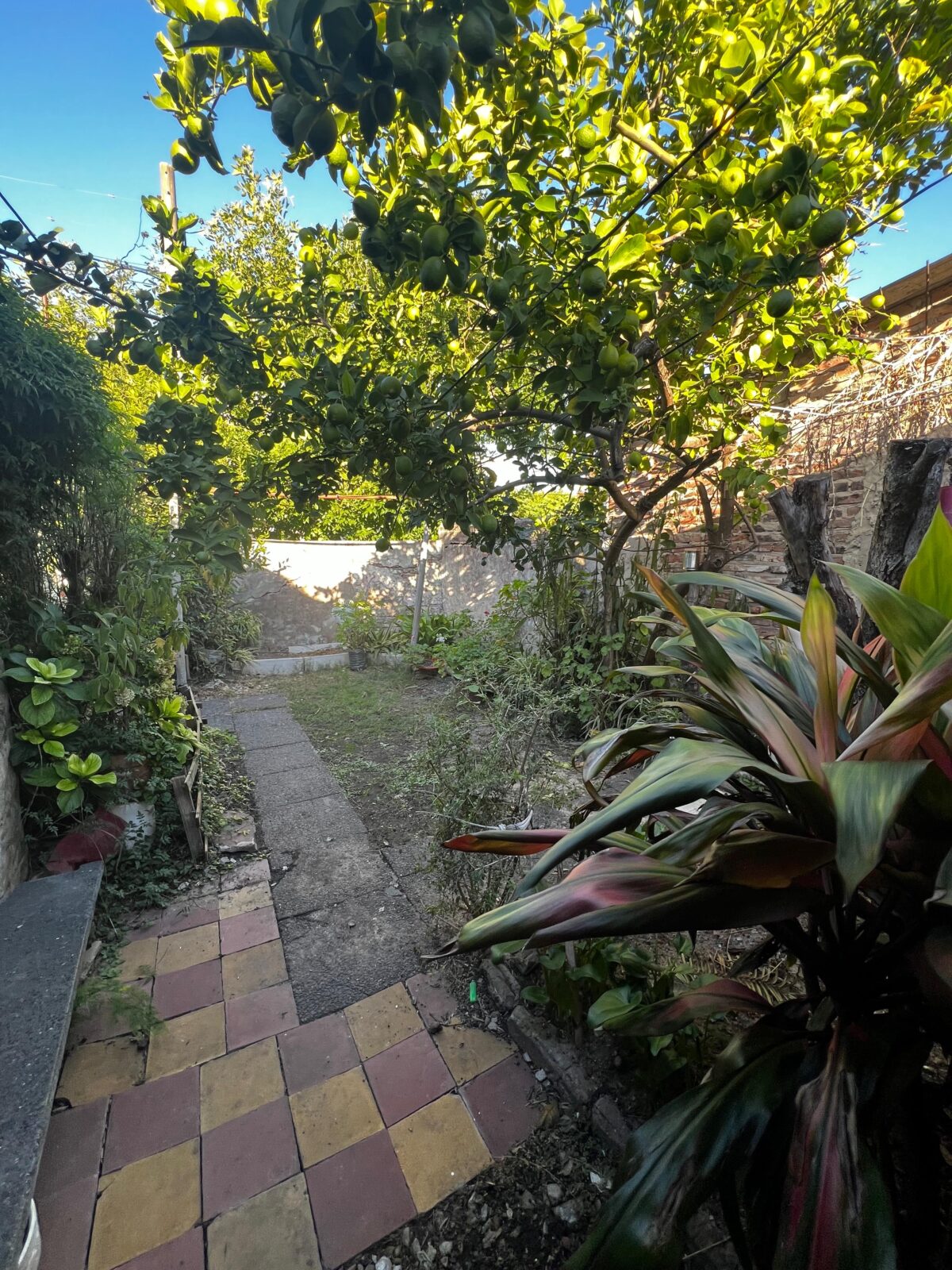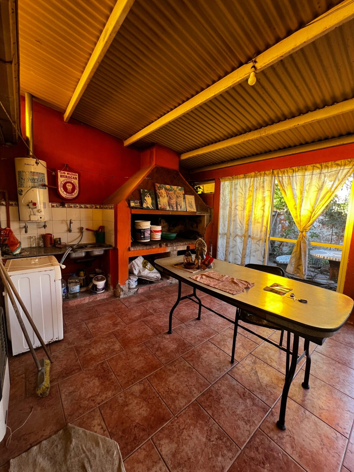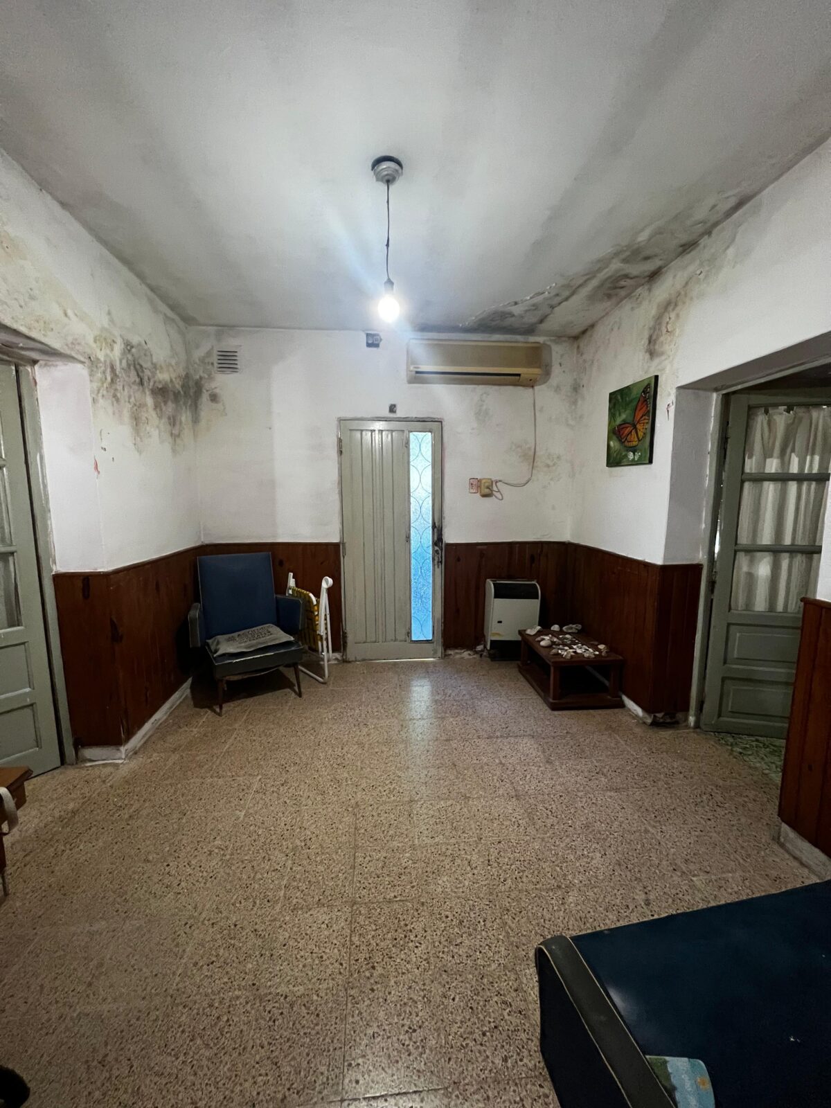 En la parte posterior y con frente a calle Perón encontramos una entrada para auto y un pequeño departamento en estado total de refaccion compuesto por living comedor, un dormitorio y un baño-