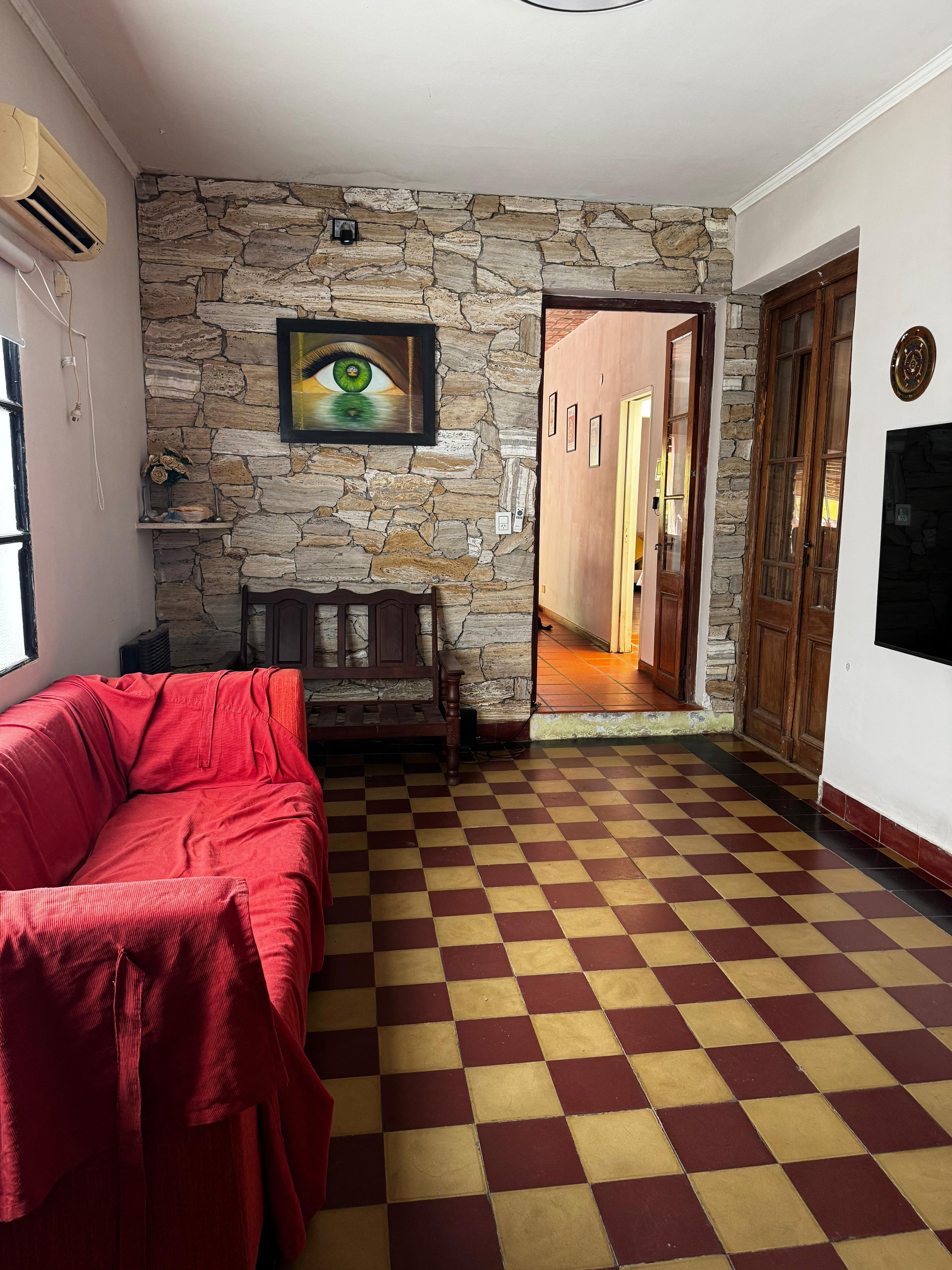 Se desarrolla en planta baja y cuenta con living, cocina/comedor integrado, cuatro dormitorios, dos baños (uno de ellos requiere refacción), y un amplio patio de material con quincho semicubierto, parrilla y pileta.