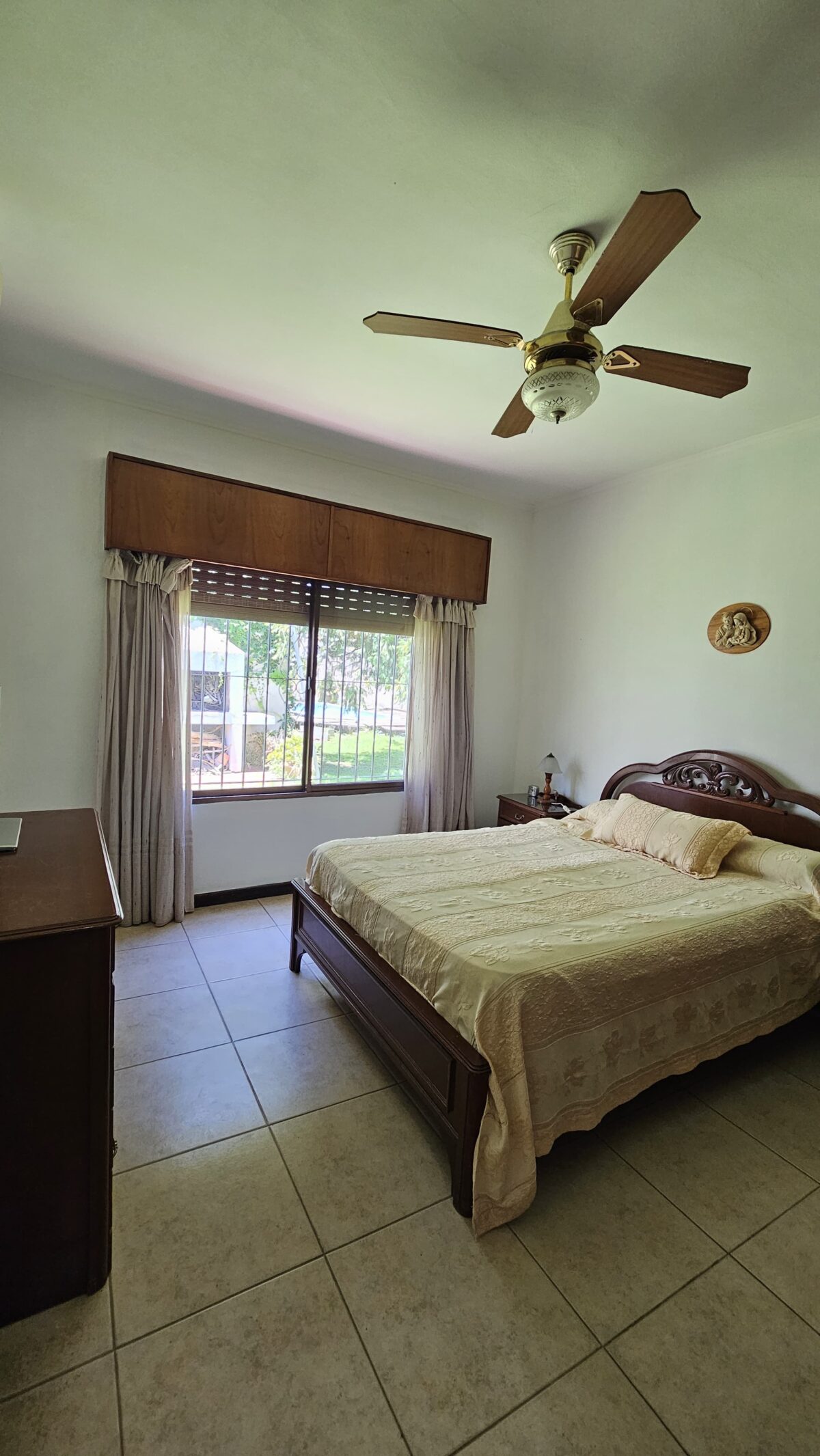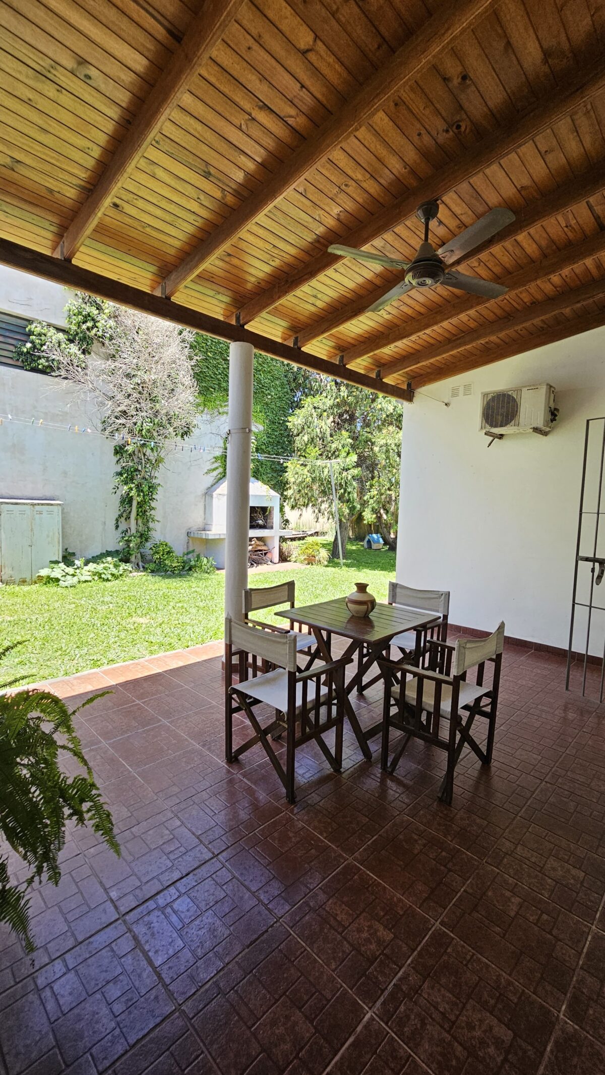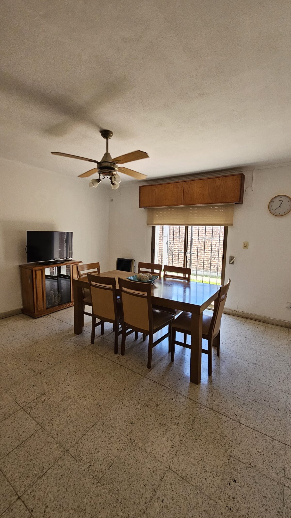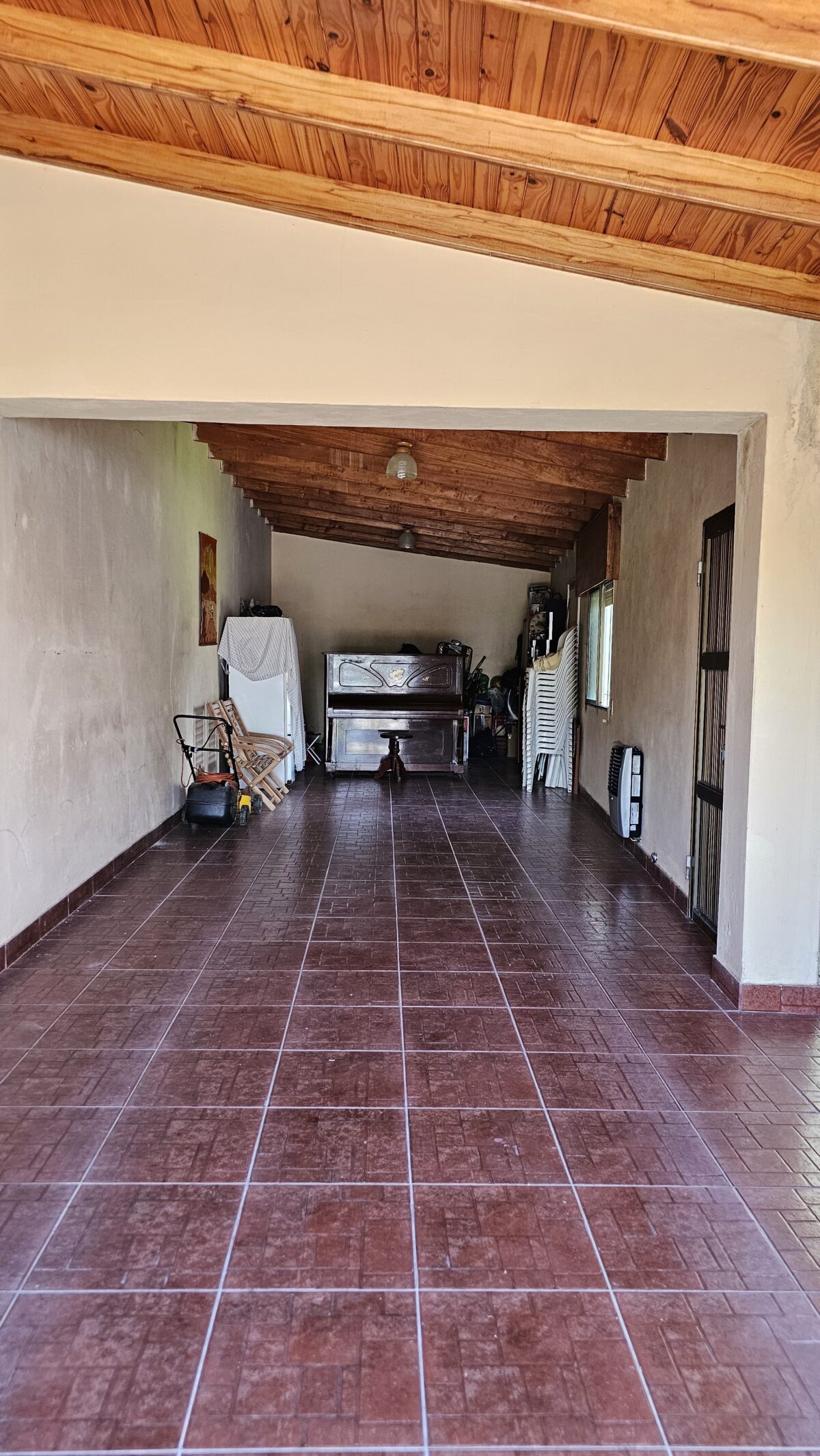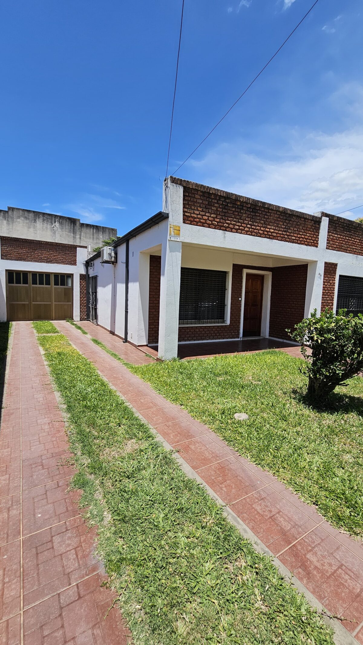 La propiedad se desarrolla completamente en planta baja, compuesta por living, cocina/comedor amplio, lavadero, baño completo, tres dormitorios (uno de ellos con baño en suite, cuenta con bañadera), garage, galería, parrilla, patio delantero y patio trasero con césped.