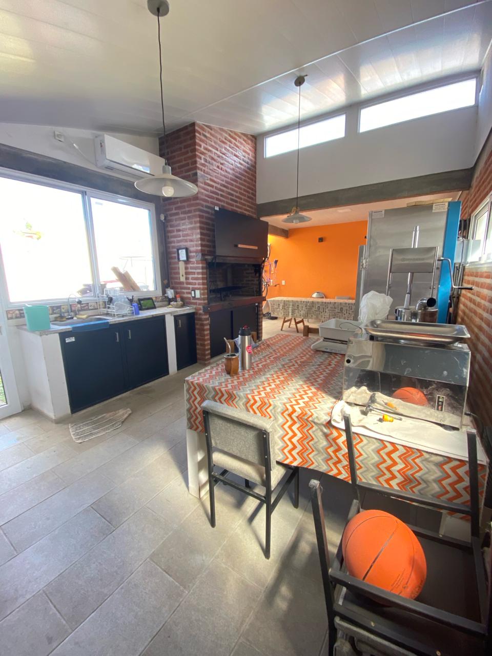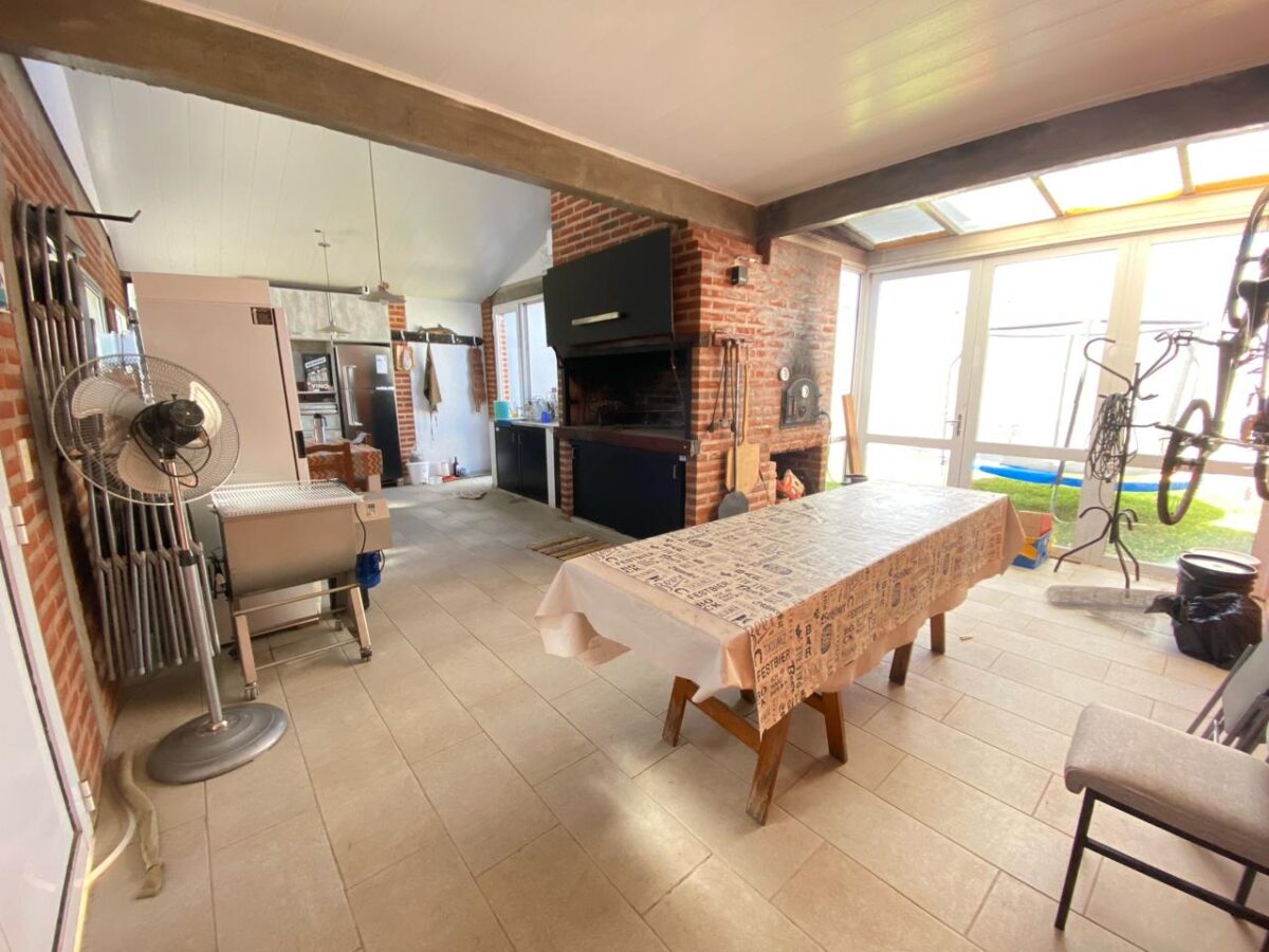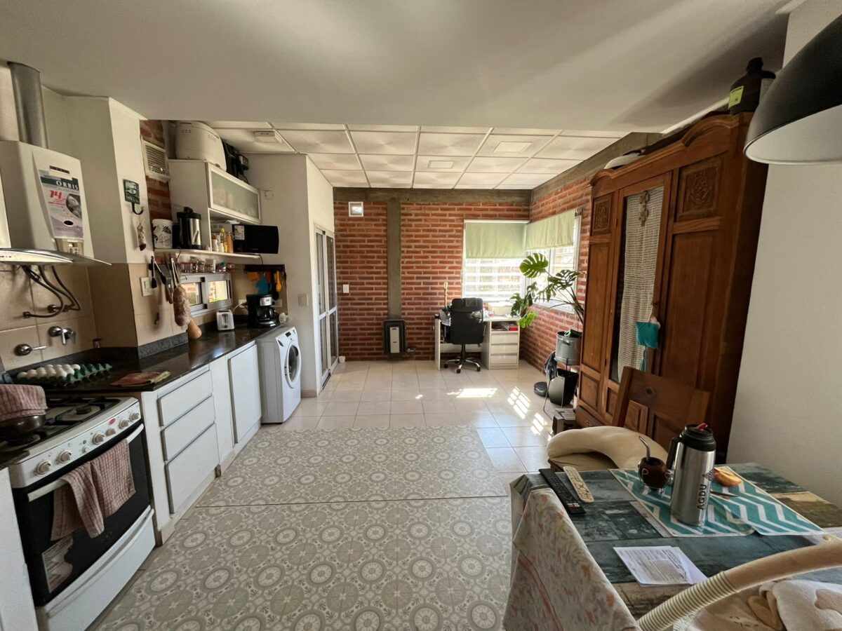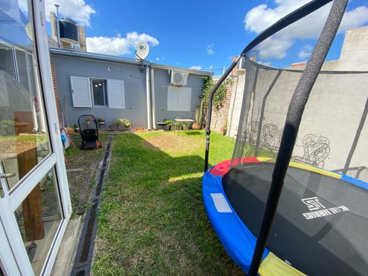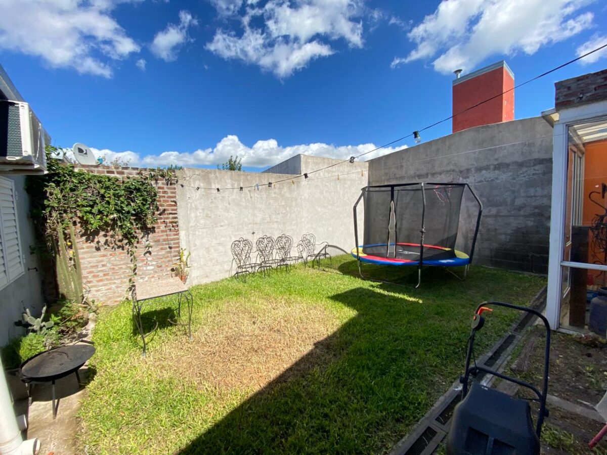 La Casa se desarrolla en su totalidad en planta baja, compuesta por su living-cocina-comedor integrado, dos dormitorios, un baño completo y otro de servicio, patio interno chico, quincho amplio con parrilla y cochera para un vehículo, en el fondo tiene un patio con verde. Además cuenta con una entrada delantera con patio y entrada para un vehículo semicubierto.