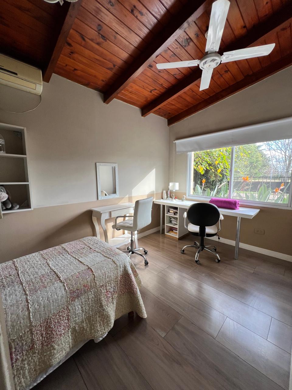 La misma, cuenta con 4 dormitorios, todos con placares empotrados, 2 baños completos, una oficina con vista al jardín, un quincho con lavadero, parrilla cubierta y entrada para auto.